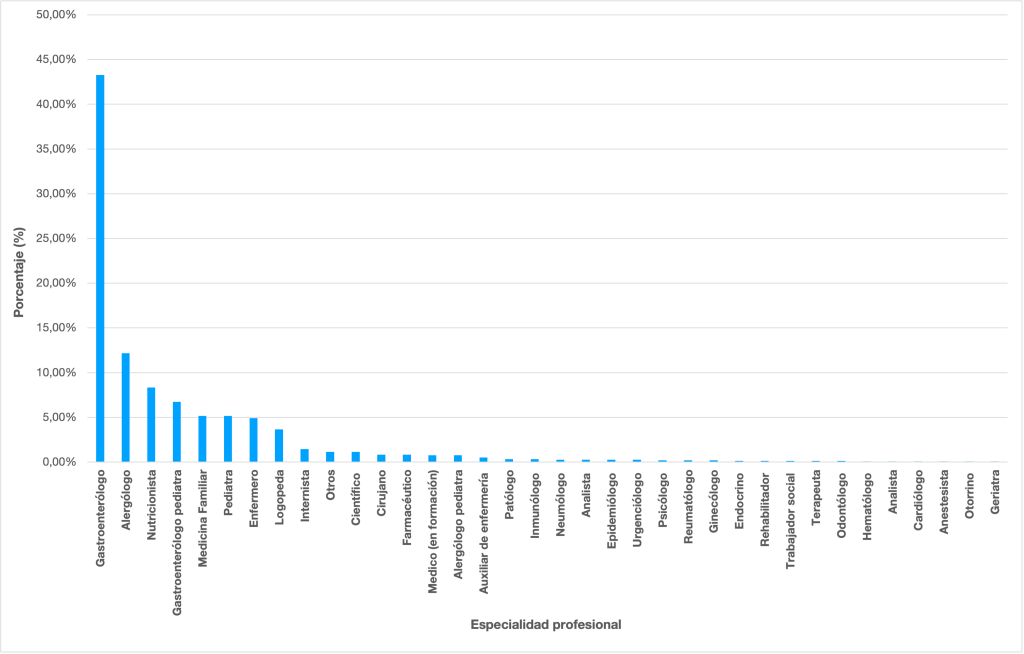 Figura 2. Distribución de los asistentes en función de su especialidad profesional.