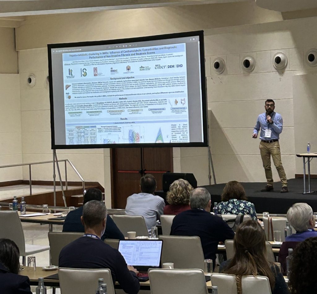 En este marco, Eimirlab participó en uno de los Flash Talks, representado por el Dr. Iván Arias, quien presentó un trabajo centrado en la relación entre la EII y MASLD (Enfermedad Hepática Grasa Asociada a Disfunción Metabólica). Su intervención permitió mostrar parte de nuestra investigación reciente y reforzar el intercambio de conocimiento entre grupos de ambas áreas.